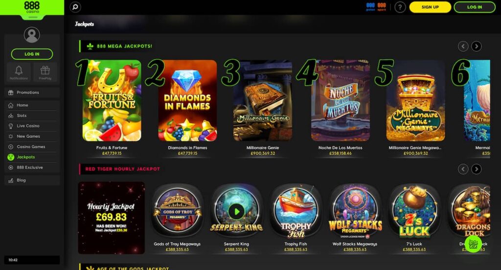 888 Casino is easily the best slot site in the U.K. It has a combination of offerings that beat others. With over 2,000 slot titles of different themes, 888 Casino is the one-stop slots shop in the U.K. In addition to that, players can also benefit from unique features such as the Daily Wish Wheel for free spins and bonuses, triple licensing for trust, and a shared wallet. Players also get their play incentivized with an array of bonuses and promotions that begin from registration and continue throughout the gaming period.